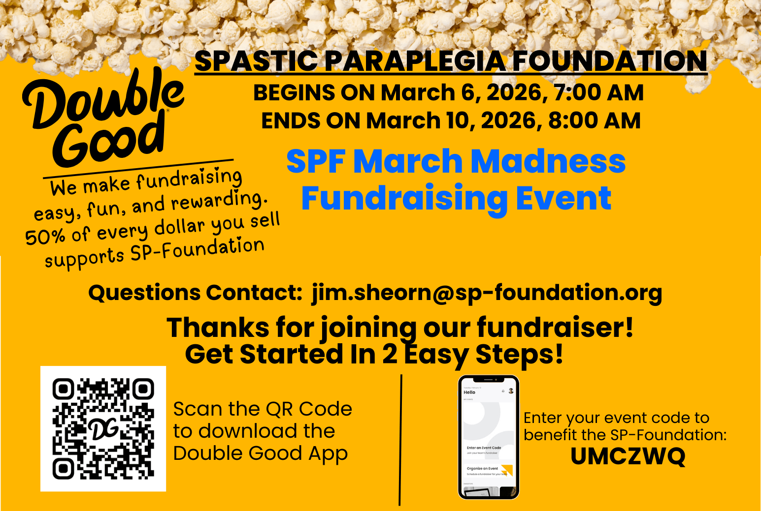 Are you ready for March Madness? How about some delicious popcorn to add to the excitement? From March 6th - 10th, 2026 Spastic Paraplegia Foundation volunteers will be selling Double Good Popcorn. Orders will ship directly to you.