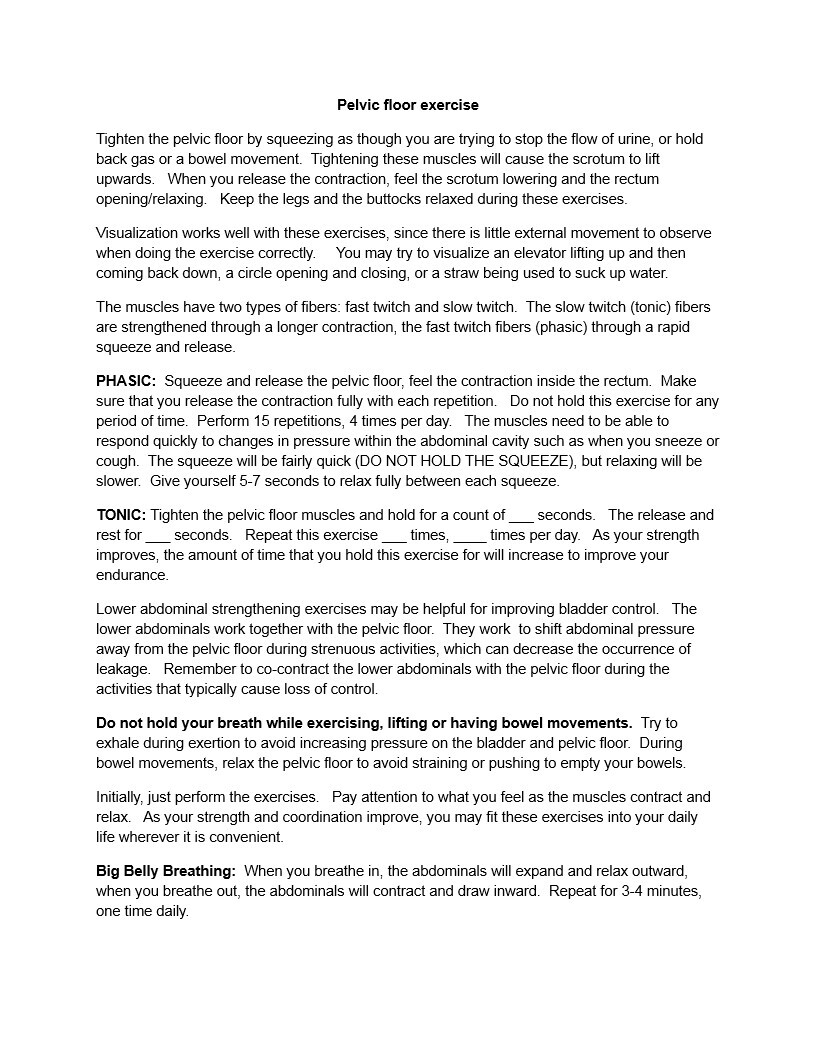 Also see documents below for Pelvic Floor Home Program and Exercises
