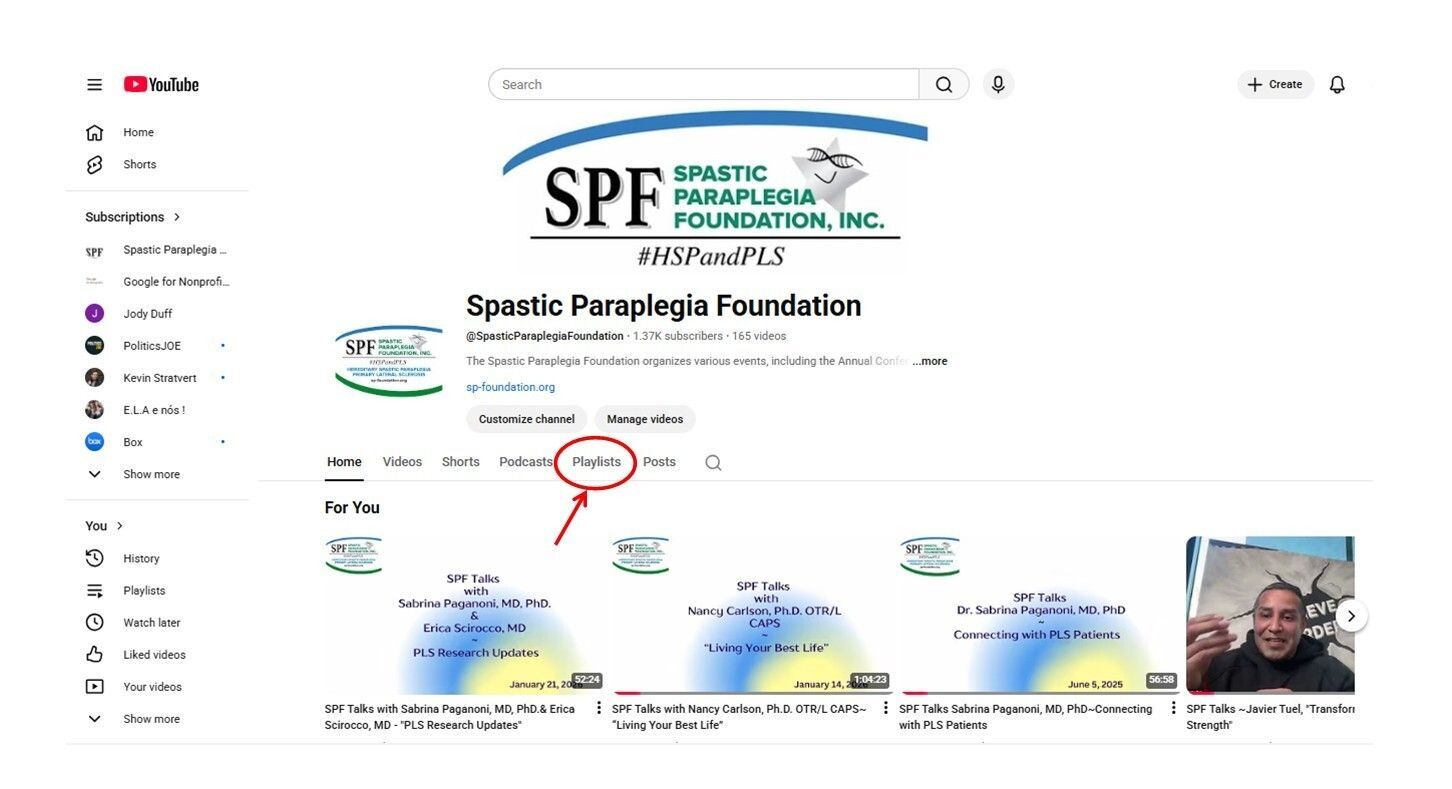 The Spastic Paraplegia has a YouTube Channel full of videos, recordings and podcasts from the SPF Annual Conferences (2017 - Present), SPF Talks, HSP&PLS Awareness Weeks, Dr. John Fink, Dr. Hande Ozdinler and much more.